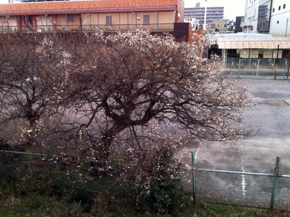 大学の図書館の前の梅がほころんでいました。