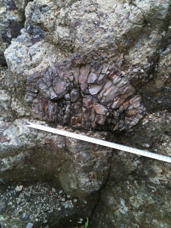 武生林道の露頭は、年々悪くなり「偽枕状溶岩」の露頭は1つだけになってしまいました。