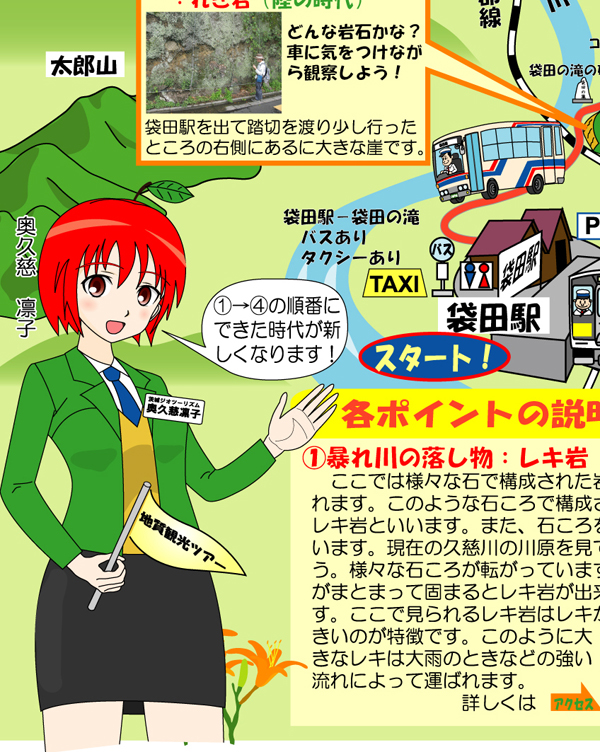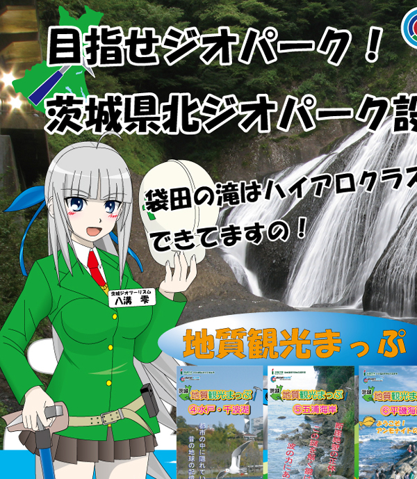 大子町袋田周辺地域担当「奥久慈凛子」.「地質観光まっぷ袋田の滝」で登場.