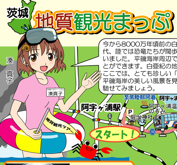 ひたちなか市平磯海岸担当「湊真子」.「地質観光まっぷ平磯海岸」で登場.