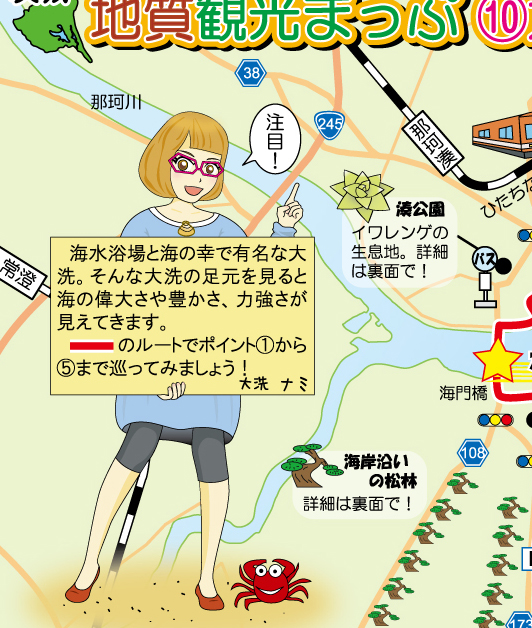 大洗町担当「大洗ナミ」.「地質観光まっぷ大洗」で登場.