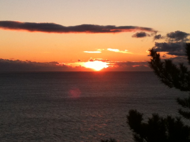 大観荘より望む,太平洋からのぼる朝日(1月30日)